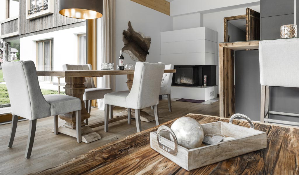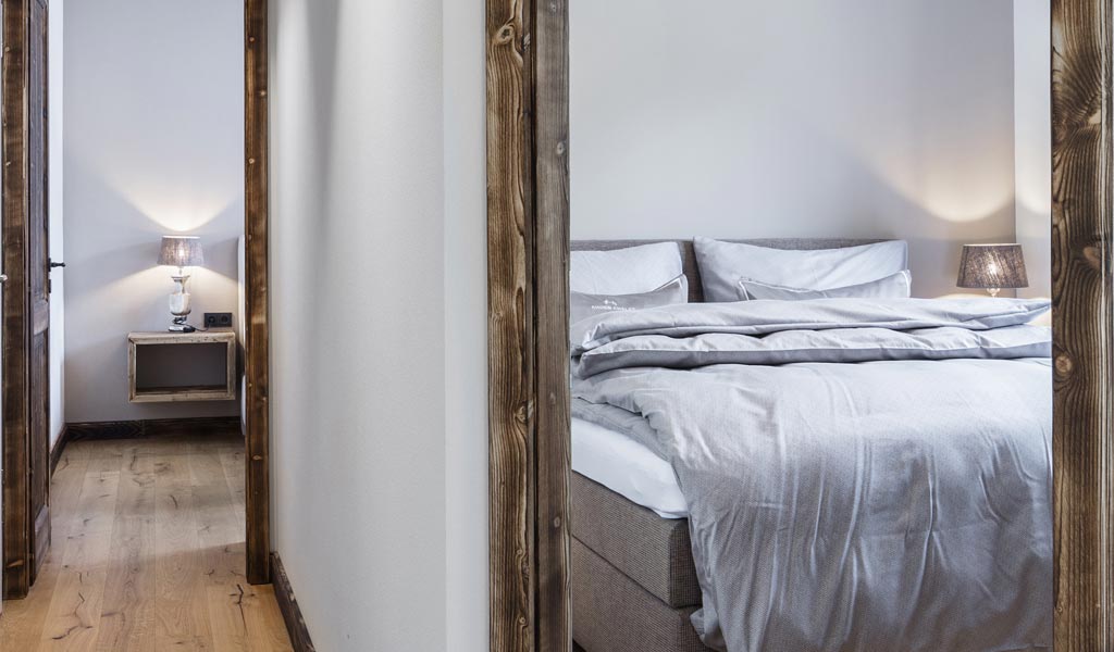 Von der Tiefgarage aus gelangen Sie mit dem Aufzug in Ihr Chalet-Apartment. Hier ist an die ganze Familie gedacht. Voll ausgestattete, offene Küchen mit den Bora System, Bäder mit schwellenlosen Duschen und privater Sauna und große Terrassen oder Garten.